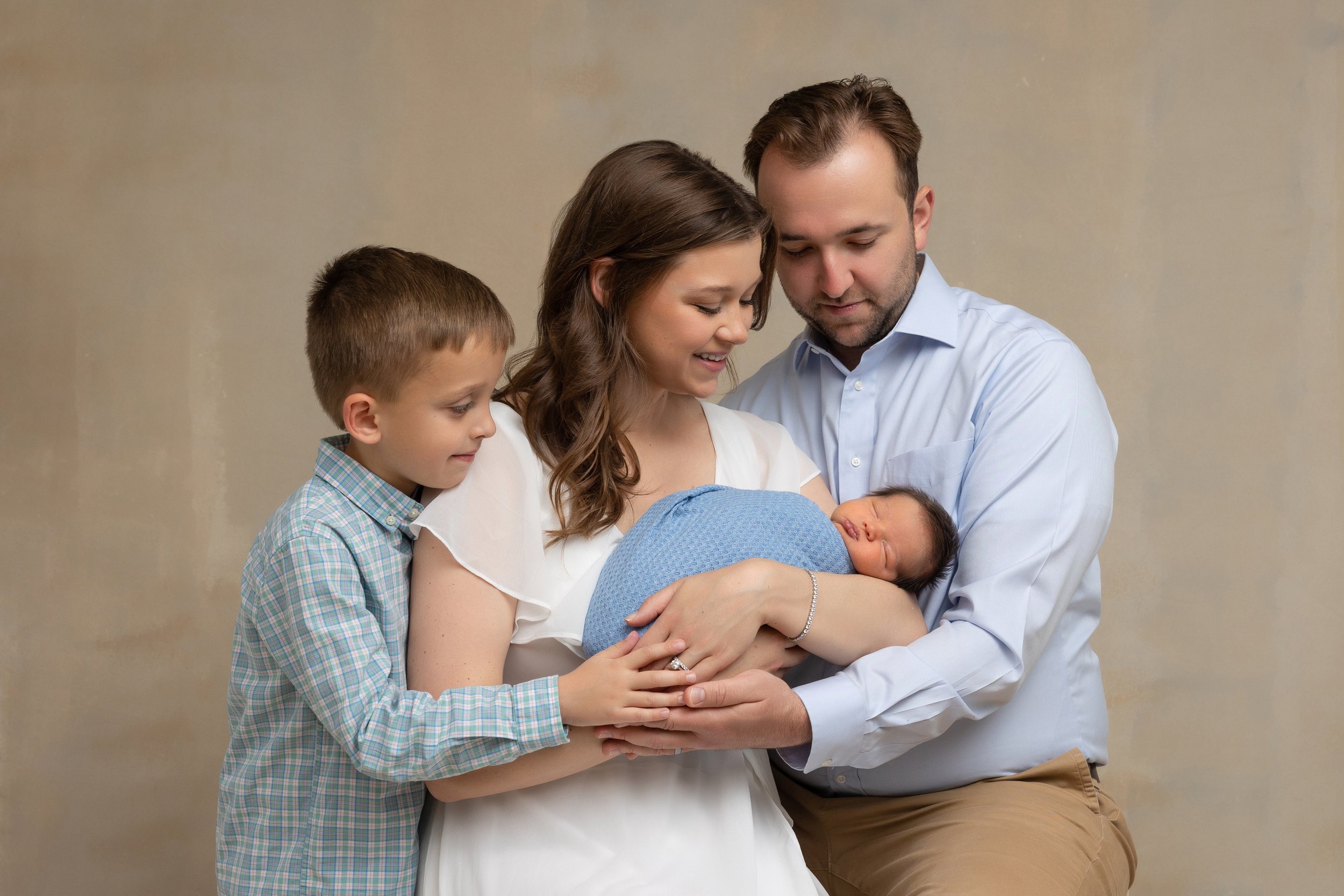 These portraits focus on connection — capturing the quiet moments between parents, siblings, and your newborn.