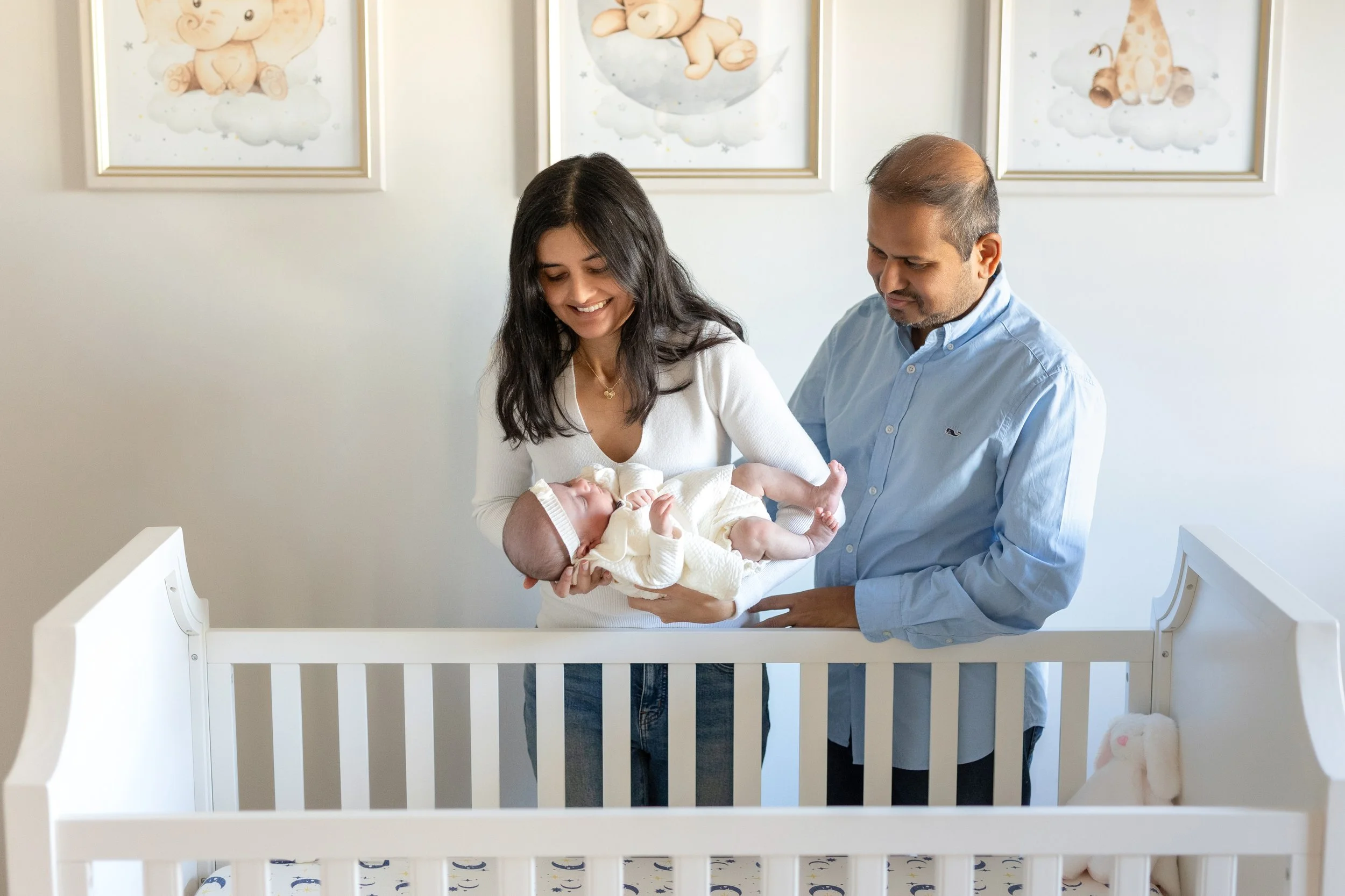 Extended family storytelling coverage (siblings + parents + nursery details)