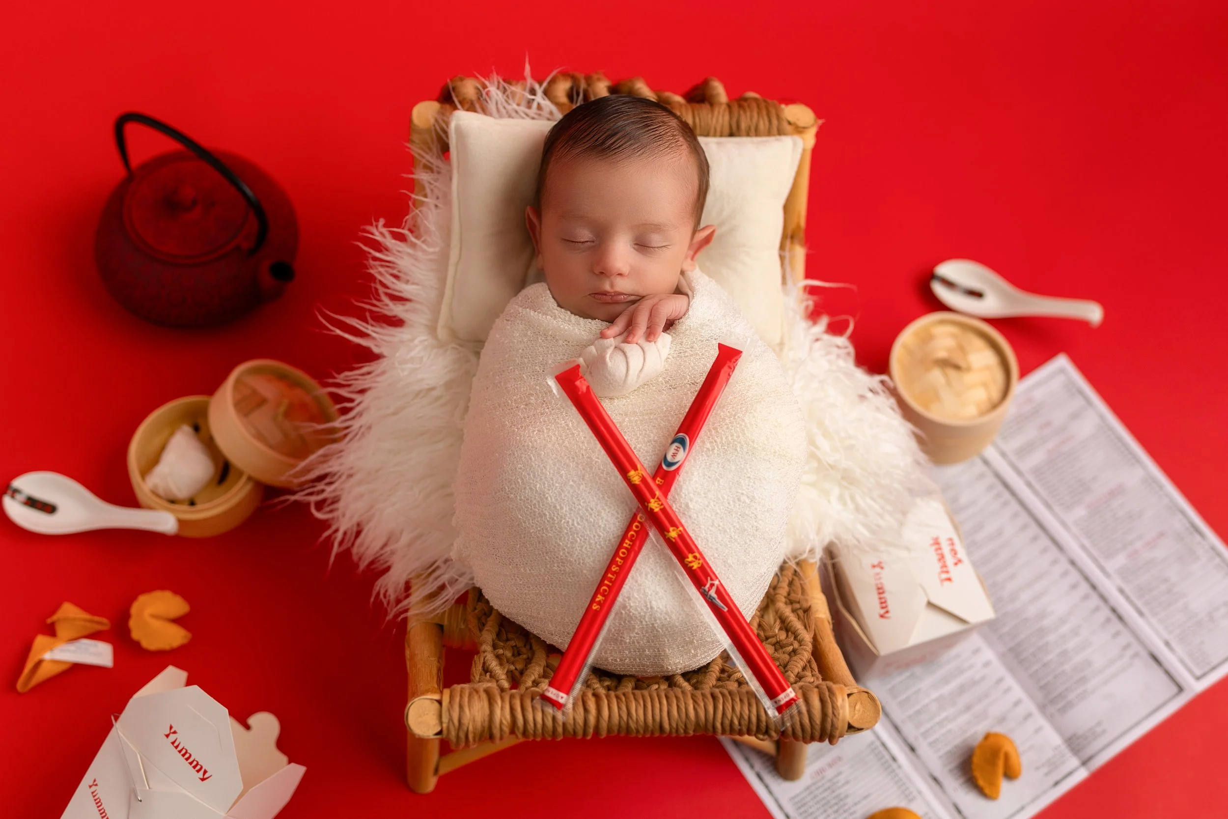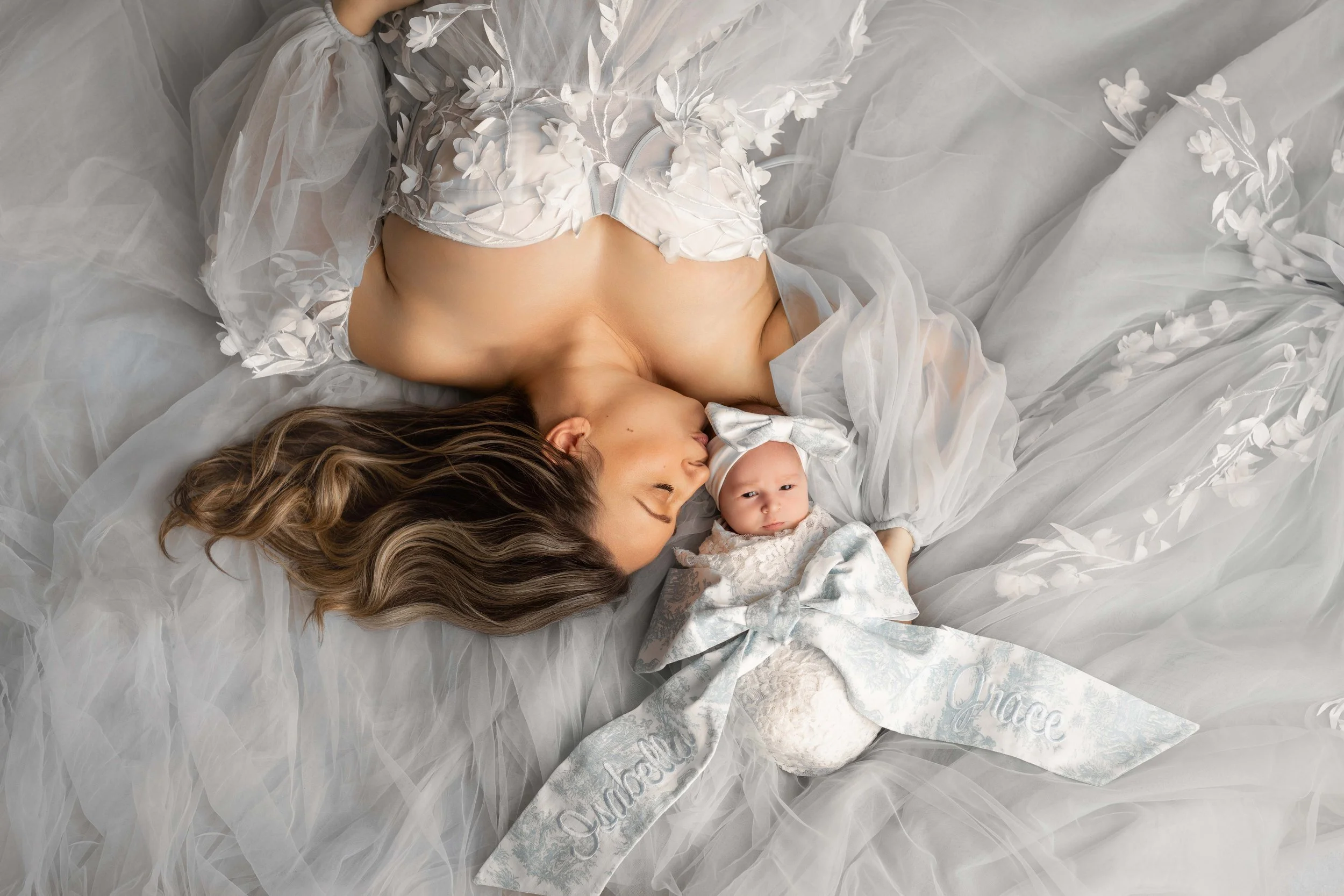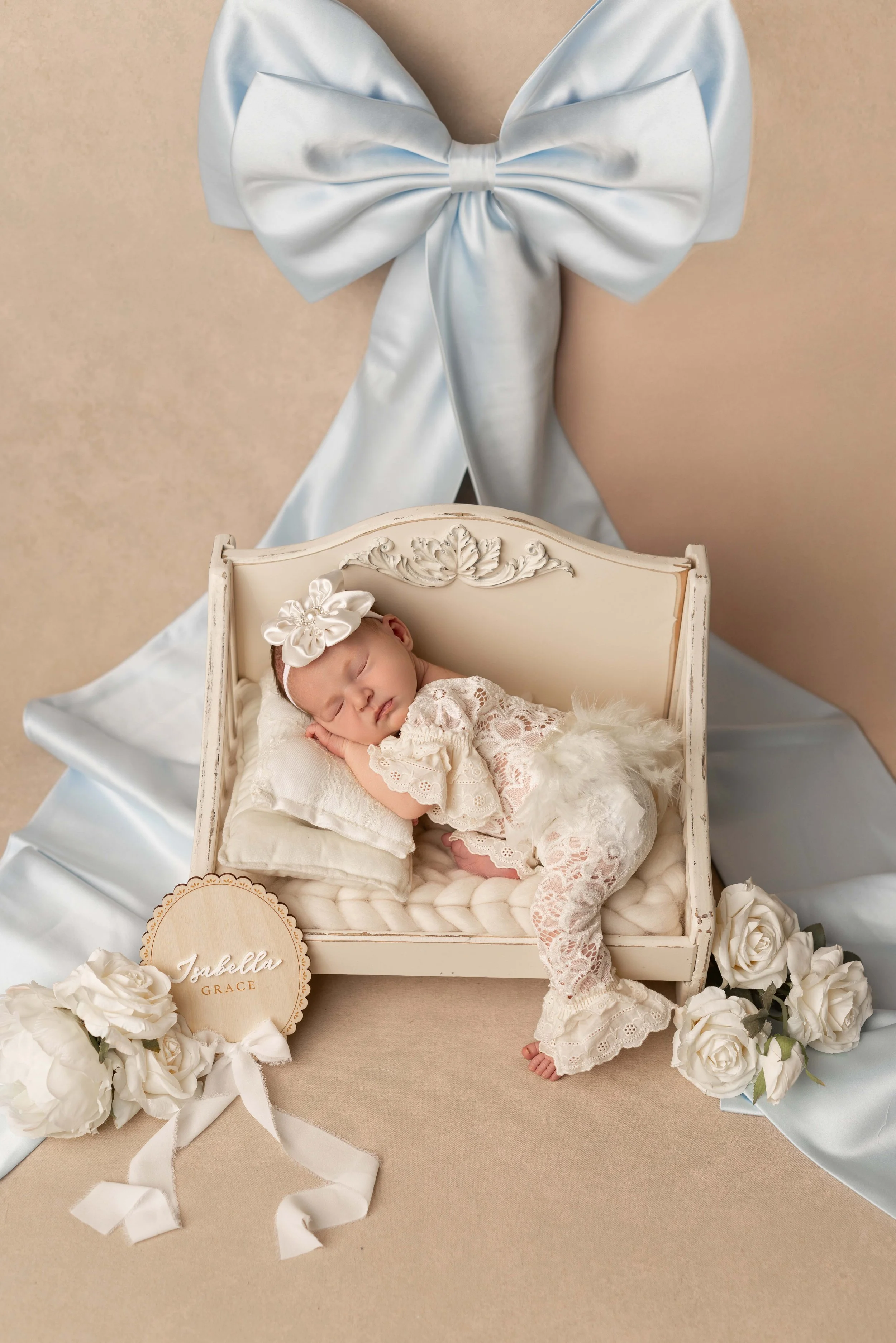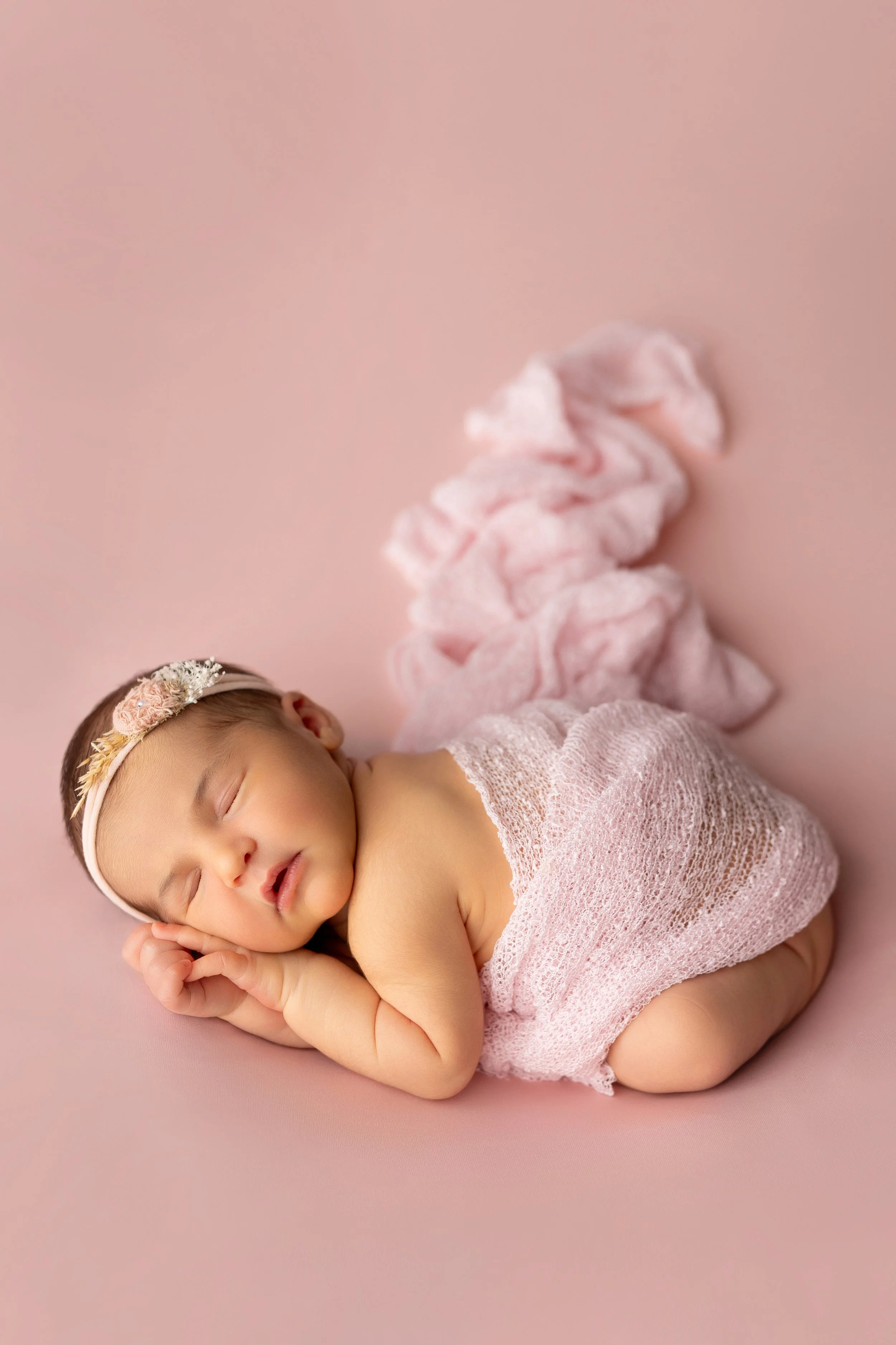 • Use of luxury wraps, props, headbands, and curated newborn styling