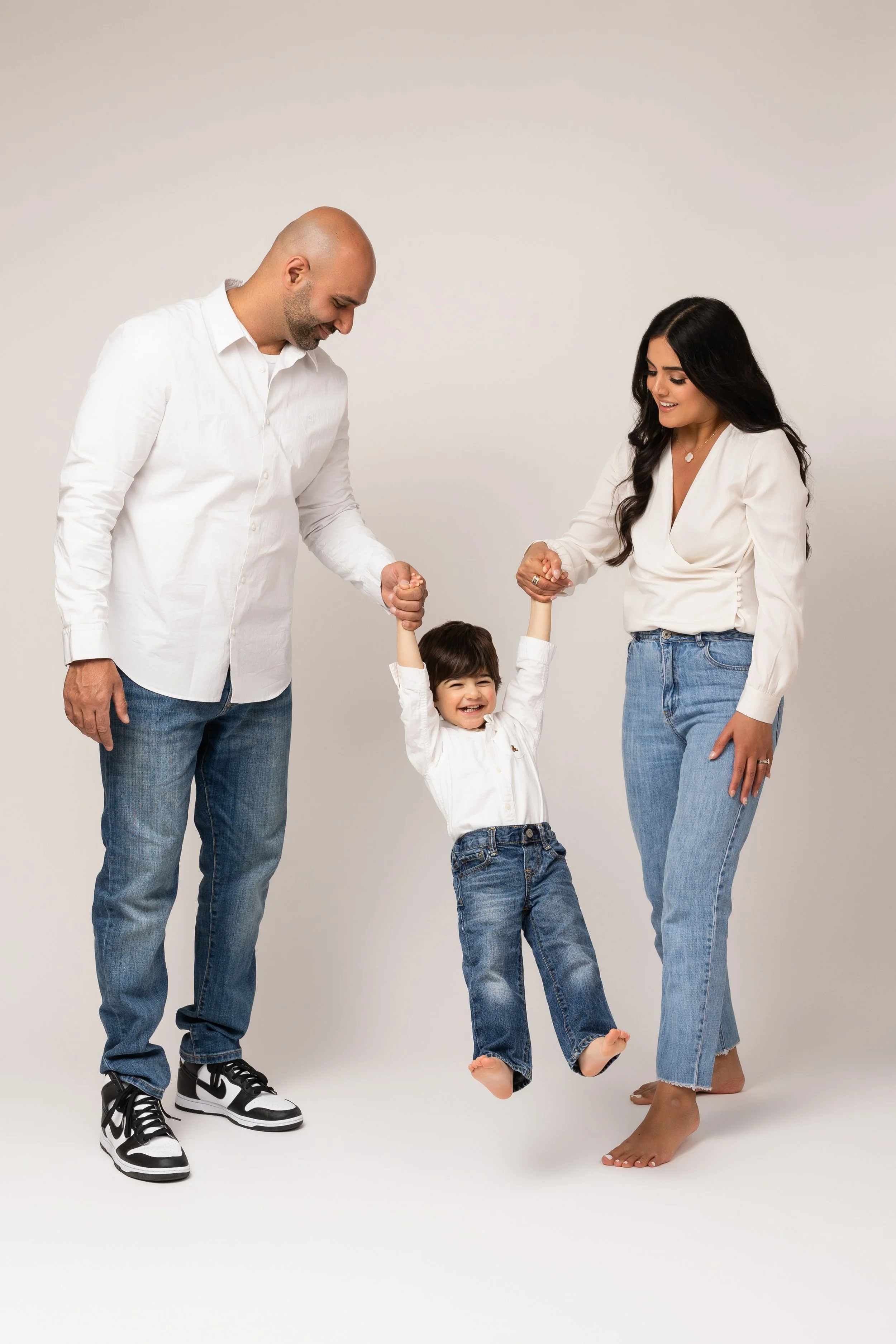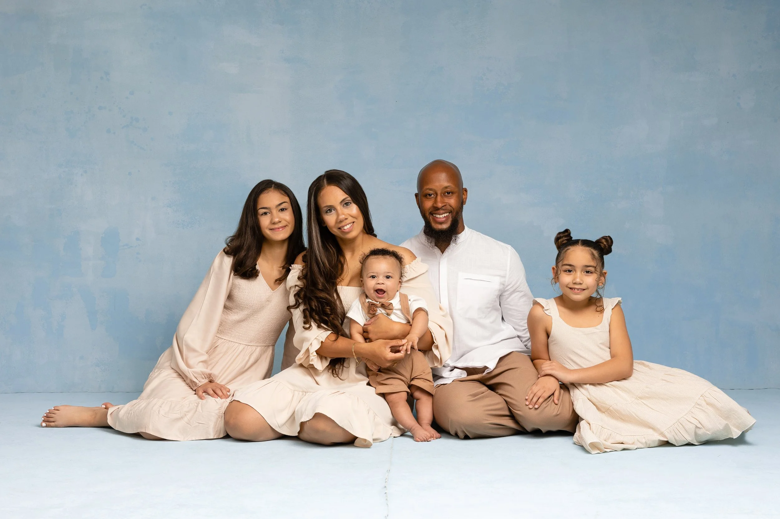 Our boutique, full-service experience is thoughtfully designed so you can simply arrive and be together. With curated wardrobe guidance, soft, flattering light, and gentle direction, we create timeless portraits that feel natural, connected, and beautifully refined; whether in our studio or at a meaningful location like your family’s beach home or favorite outdoor setting.
